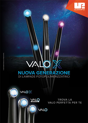 La lampada per la fotopolimerizzazione VALO™ X è la più innovativa fra le lampade LED in commercio. Caratterizzata da una lente più ampia da 12,5 mm, LED di lunga durata e potenza ottimizzata, con la nuova lampada per la fotopolimerizzazione VALO™ X sarai in grado di polimerizzare in modo uniforme tutti i materiali dentali fotopolimerizzabili all'interno di un'area di polimerizzazione ancora più ampia. I suoi 12 LED (8 LED per la fotopolimerizzazione e 4 luci bianche) forniscono un'eccellente profondità di polimerizzazione e collimazione del fascio con una migliore gestione termica e durata del LED, così puoi essere sicuro della tua fotopolimerizzazione.