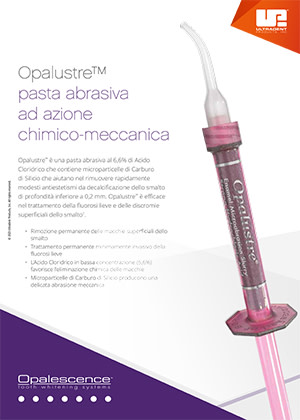 Usare pasta Opalustre e OpalCups per rimuovere rapidamente modesti antiestetismi di decalcificazione dello smalto di profondità inferiore a 0,2 mm. Le paste per abrasione rappresentano la soluzione ideale per la rimozione di macchie giallo-marrone dovute a fluorosi.1